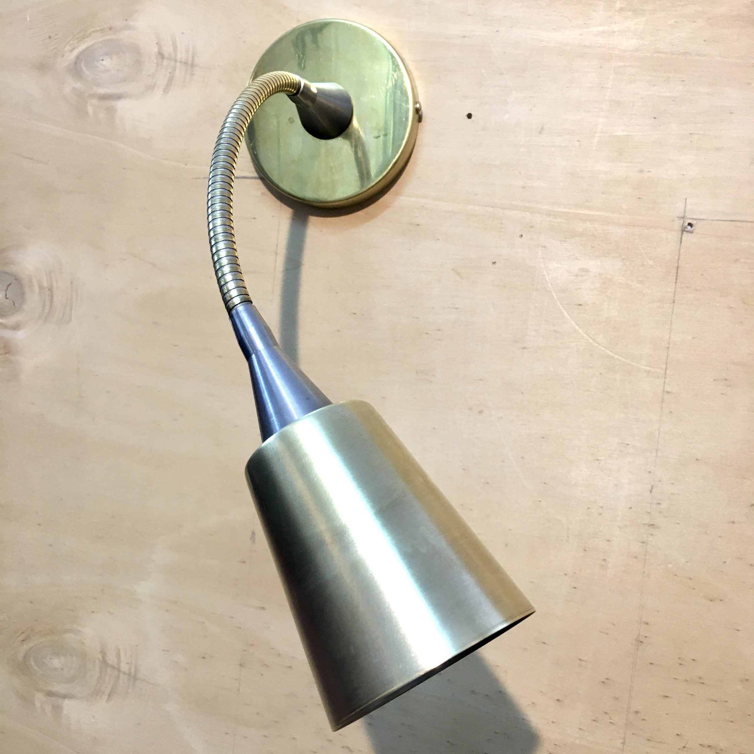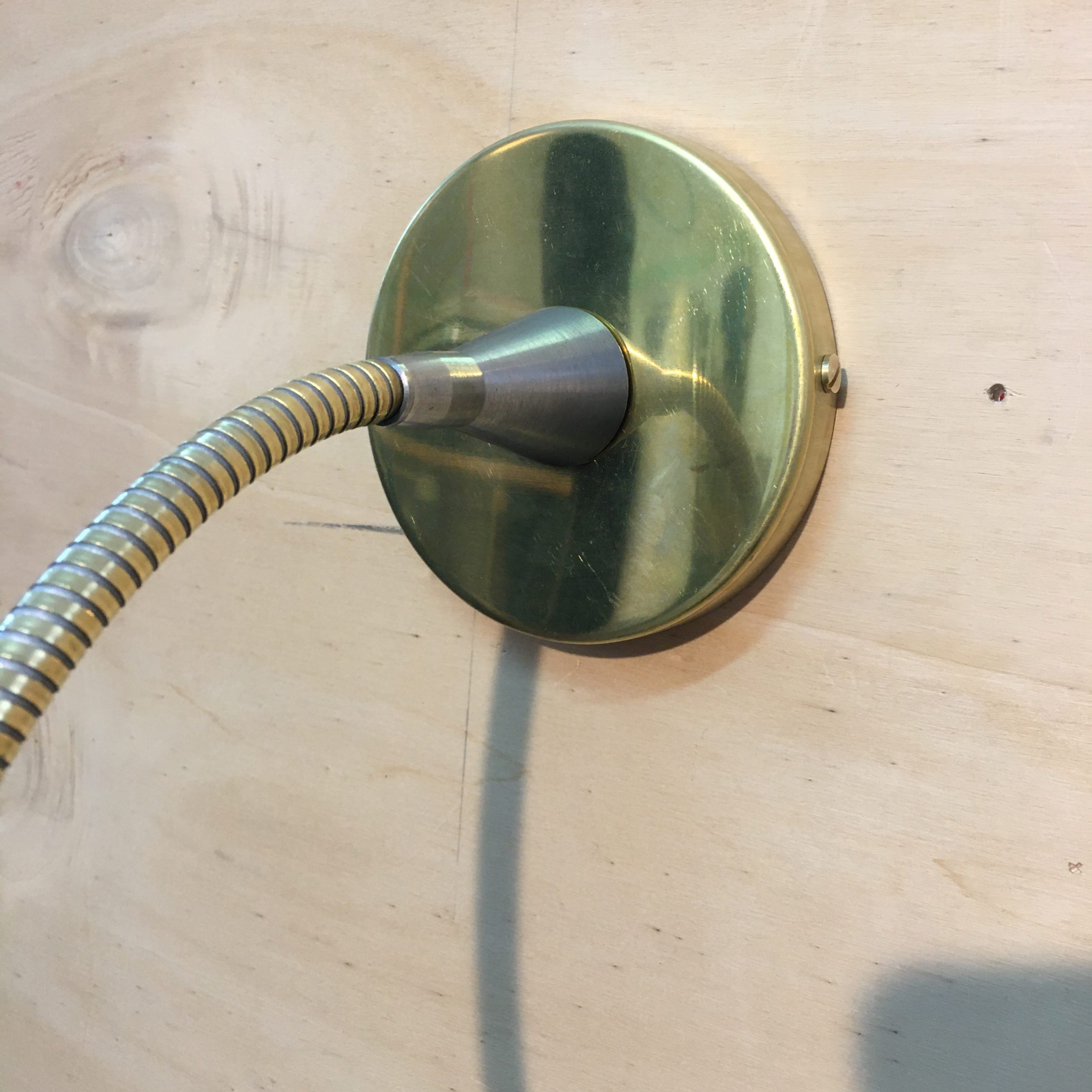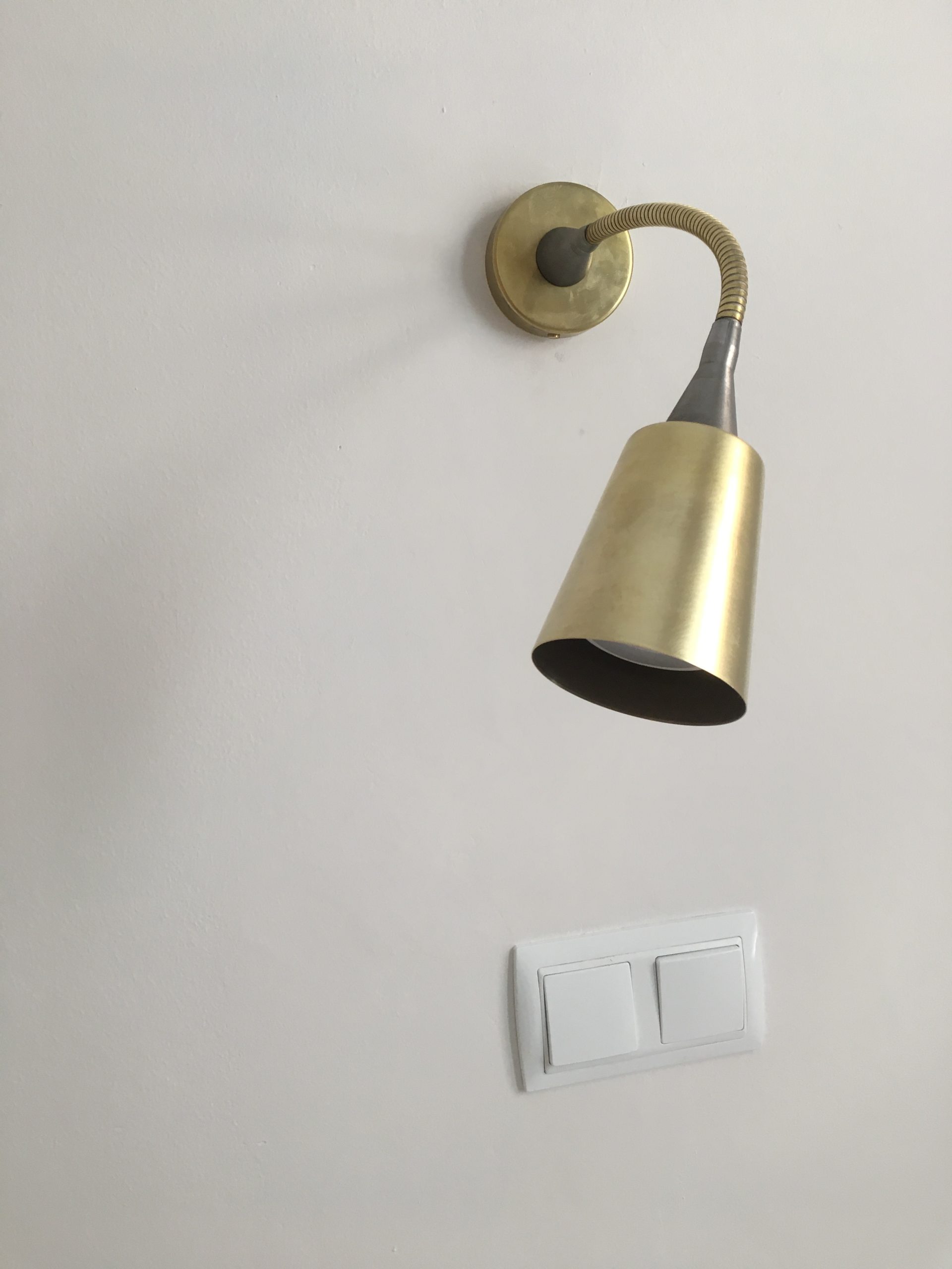 Este aplique de pared combina estilo y funcionalidad, convirtiéndose en una pieza esencial para cualquier espacio interior. Fabricado en latón y hierro, este aplique aporta un toque de sofisticación y modernidad a tu hogar. Su diseño minimalista incluye una base redonda que se fija fácilmente a la pared y un brazo flexible que permite ajustar la dirección de la luz según tus necesidades.